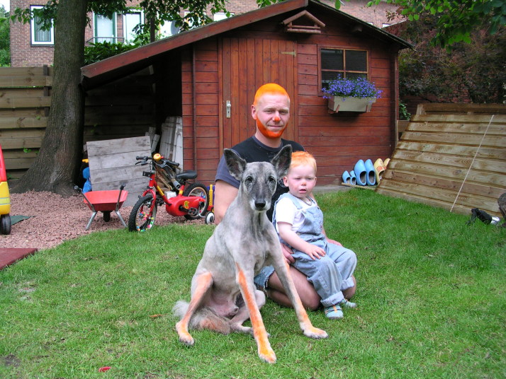 Tommie was a fan of the dutch soccer team and painted orange when a match was played and here, has gone to the barber,he was at high age of 12 years